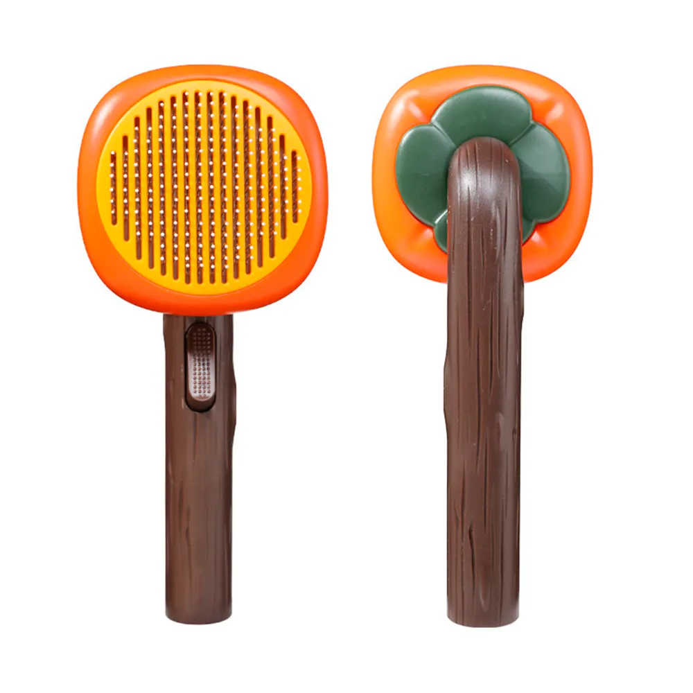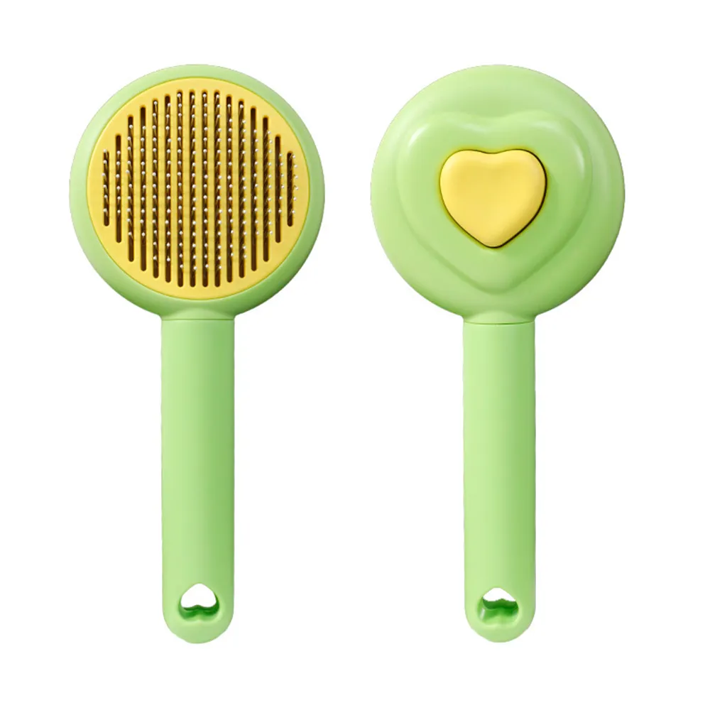 Peine para mascotas con botón grande y autolimpiante. Color amarillo. Pack x 12 unidades