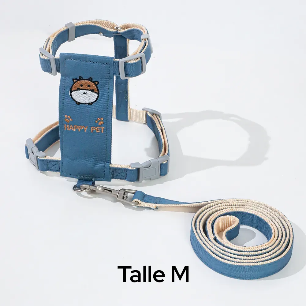 Arnés tipo “I” con correa para pecho y espalda, para perros pequeños. Talle M. Color Azul. Pack x 12 unidades