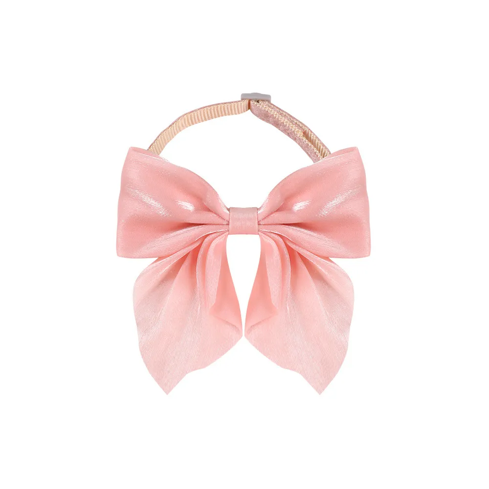 Pajarita grande de seda brillante con sujeción para collar. Color rosa de 1.5 cm. Pack x 12 unidades
