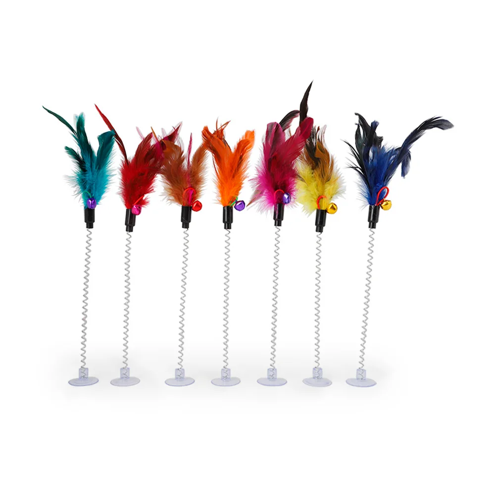 Base con ventosa, muelle y ratón/pluma de peluche multicolor. Pack x 12 unidades